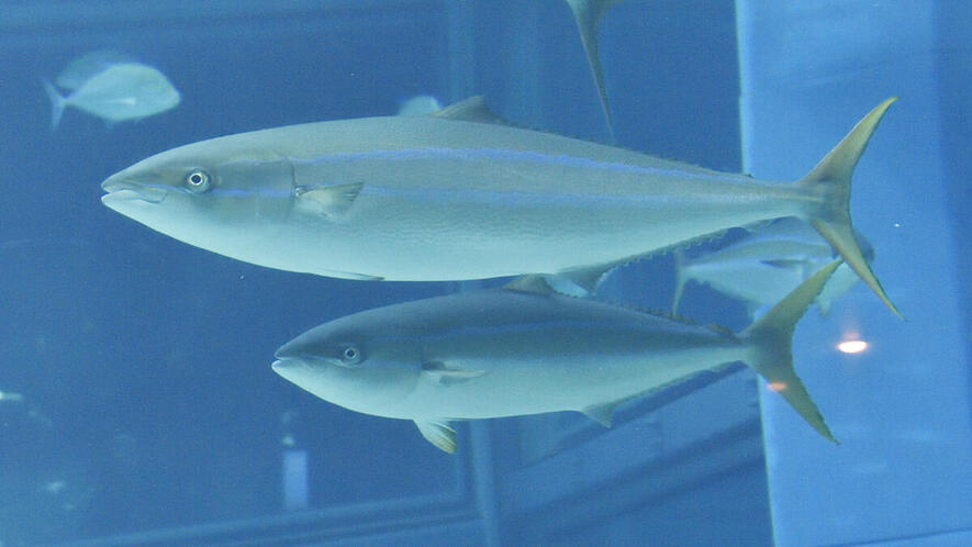 細長い体に走る、青い2本の線模様が特徴です。群れをつくって生活します。