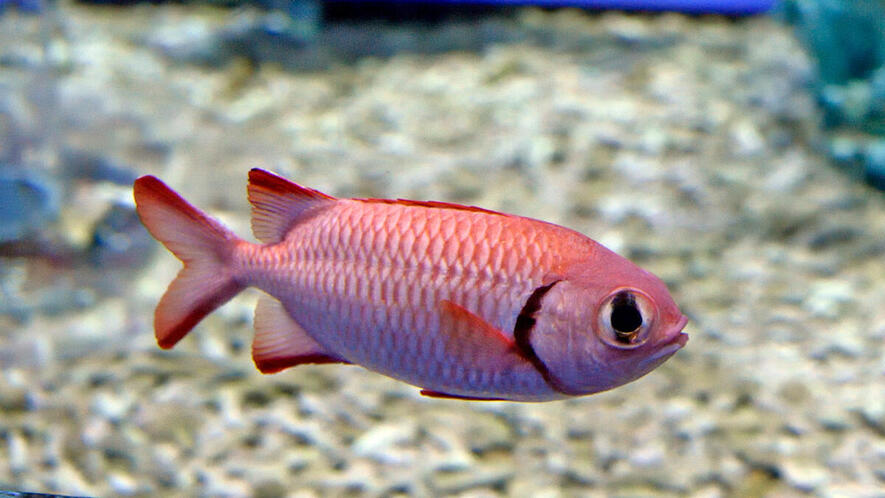 近縁種のアカマツカサに似ていますが、下顎があまり突き出ないことなどで見分けることができます。