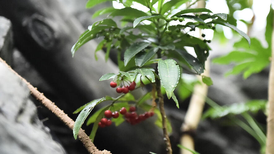 「万両」と呼ばれ、めでたい植物として扱われます。夏ごろに枝先に白い花をつけ、秋ごろには実をならしますが、赤い実と青々とした葉が冬場も美しいことから江戸時代より園芸品種として親しまれています。