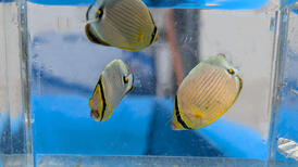 10月に近づき、秋を少しずつ感じますが、皆様いかがお過ごしでしょうか。今回は前回にも少し紹介がありましたが、以布利で見られるチョウチョウウオの仲間について紹介いたします。前回のブログ↓以布利通信101「秋の訪れ」 以布利通信70「以布利 黒潮の魚」まずは「ミスジチョウチョウウオ」です。枝状サンゴ周辺によく見られる魚で、眼と尾、そして尾鰭の付け根にある線が特徴です。サンゴのポリプを主食としており、サンゴの間に隠れている様子を見ることができます。次は「チョウハン」です。写真下の個体がチョウハン(上はチョウチョウウオ)なのですが、普通のチョウチョウウオとよく似ており、違いとしては鰓の後ろあたりに見られる黒い模様や、尾鰭基部の黒斑等で見分けることができます。ちなみにチョウハンは英名で「Raccoon butterflyfish」(ラクーンバタフライフィッシュ)と呼ばれることがあり、ラクーンとはアライグマのことを指します。目元付近の模様がそう見えるからとのことですが、個人的に幼魚の頃は、アライグマよりもパンダのような顔つきをしているなと感じます。チョウチョウウオの仲間は海遊館でも見ることができますので、種類によって違う体の模様や色をぜひみてください!