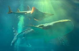 大きな目と口を窓に押し付け、ヒレをパタパタさせているこの魚の名前はハリセンボンです。映画のニモの中にも登場します。最大の特徴としては身の危険を感じると空気や水を飲み込み、体全体を膨らまして、自分のことを大きく見せることで外敵を追い払います。私はこの表情と仕草に癒されています!みなさんも自分だけの癒しの生きものを見つけに、海遊館に足を運んでもらえたらとっても嬉しいです!