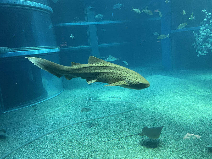 ジンベエザメが悠々と泳ぐ「太平洋」水槽、底に目をやってみるとじっとしていることの多い斑点模様の大きなトラフザメ。そんなトラフザメの不思議な生態の論文がこの度、国際学術誌に掲載されました。