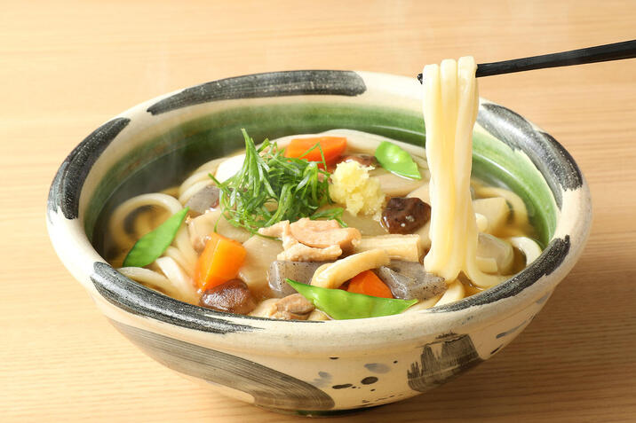当店のうどんは、小麦粉と塩と水のみで練りあげた、自家製麺です。こしのある、茹でたてのうどんをぜひご賞味ください。