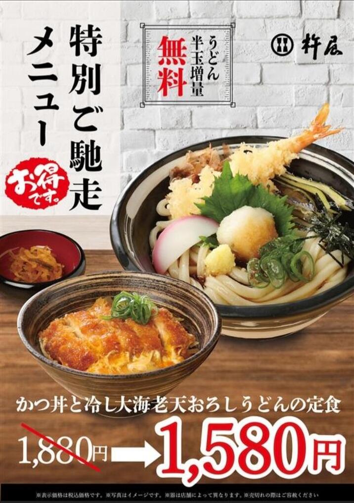かつ丼と冷し大海老天おろしうどん定食 通常1,880円 →期間中 1,580円
